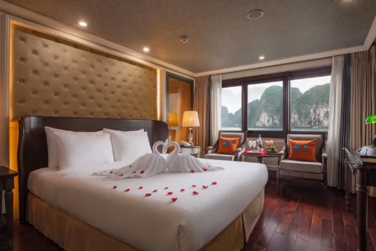 The yacht consists of 21 cabins and 3 outstanding floors with luxurious design and full 5-star facilities. Each bedroom cabin on the yacht has a balcony overlooking the beautiful bay.